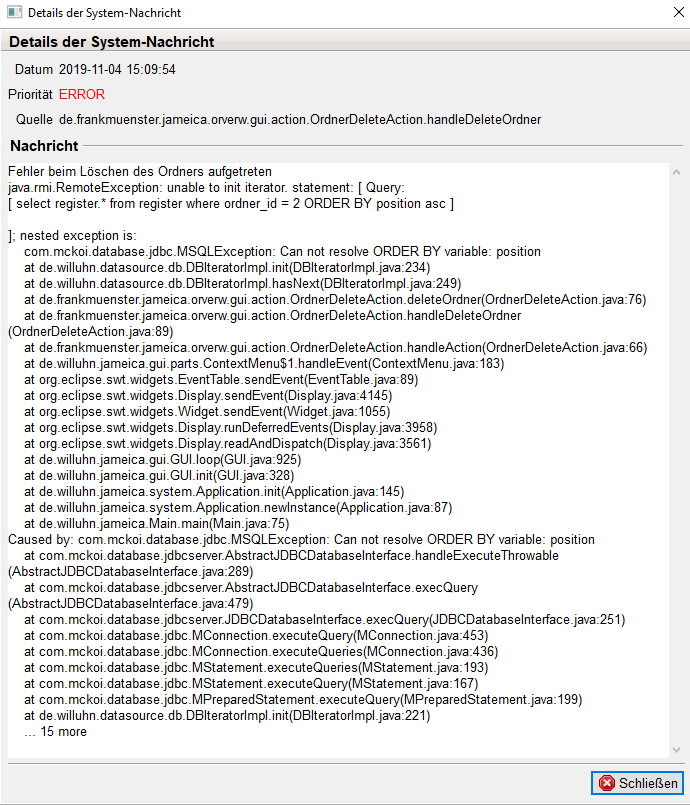 0000263 | Ordner Verwaltung | Fehler | öffentlich | 2019-11-07 20:00 | 2019-11-07 20:00 |